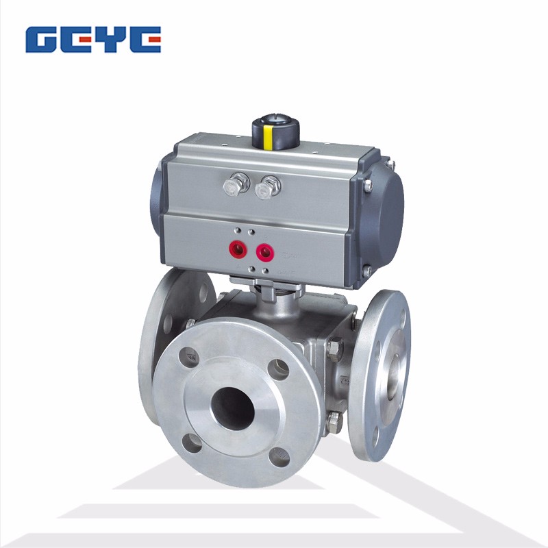 L型、T型氣動三通球閥Q644F,Q645F氣動三通球閥產品簡述:    Q644F,Q645F氣動三通球閥可靠性高,設計實現了輕量化,使用壽命長,流通能力大,阻力小。氣動三通球閥有T型和L型。T型三通球閥能使三條正交的管道相互聯通和切斷第三條通道,起分流、合流作用。L型三通球閥只能連接相互正交的兩條管道,不能同時保持第三條管道的相互連通,只起分配作用。   &nbs